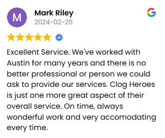 We believe in treating every customer the way we’d want our own family to be treated. That philosophy guides how we communicate, how we perform our work, and how we follow up after every job. As a local, family-owned company, Clog Heroes takes pride in serving families across Fredericksburg with honesty, respect, and dependable service.